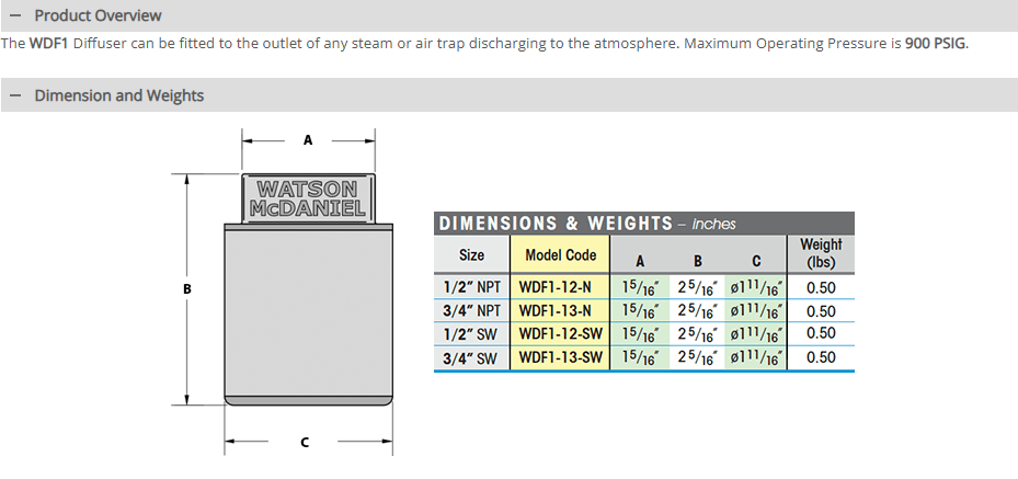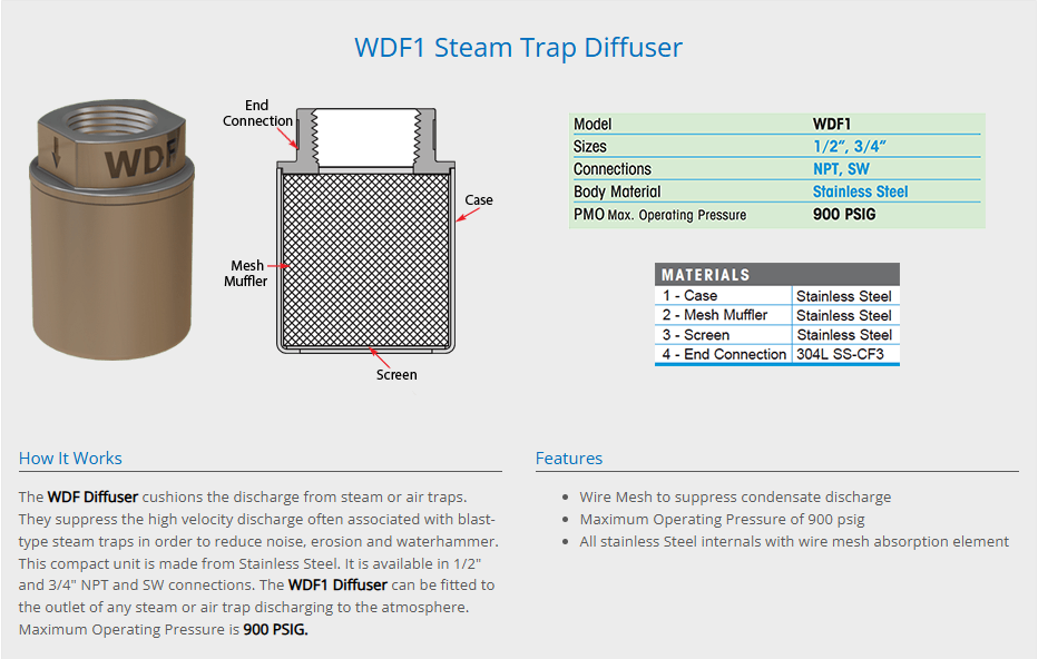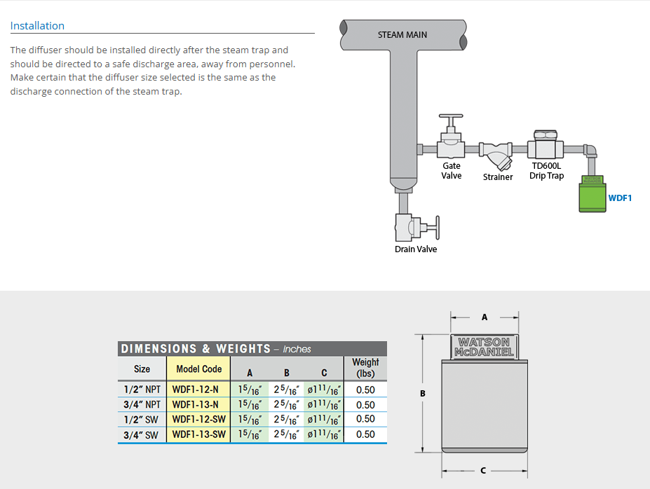 Watson Mcdaniel WDF1 Steam Trap Diffuser