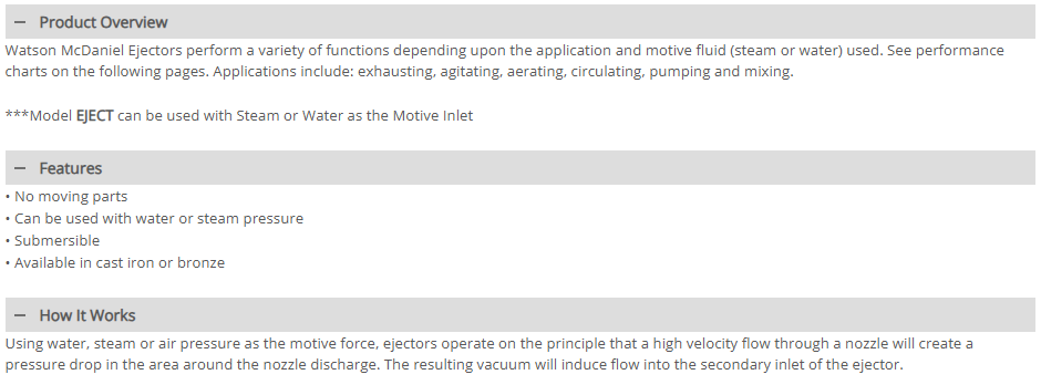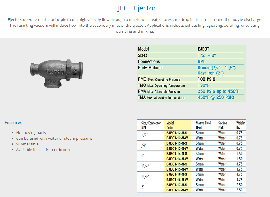 Watson Mcdaniel Syphon Pumps and Ejectors,EJECT Ejector