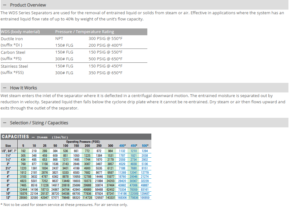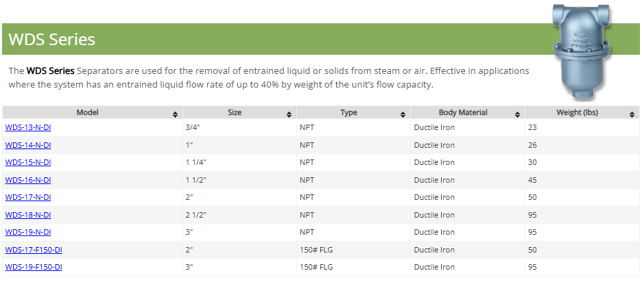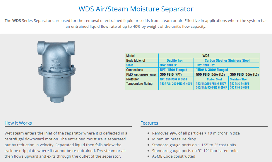 Watson Mcdaniel WDS Air/Steam Moisture Separator