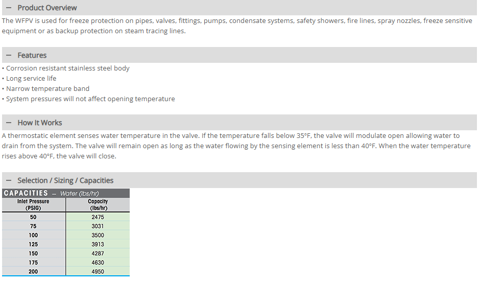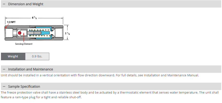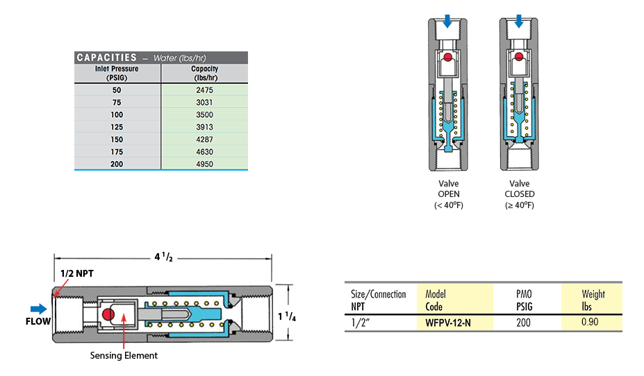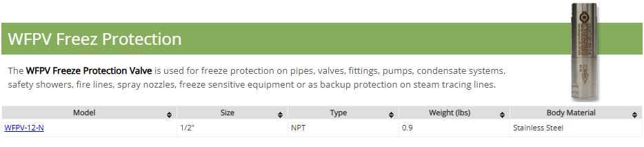 Watson Mcdaniel WFPV Freeze Protection Valve WFPV-12-N