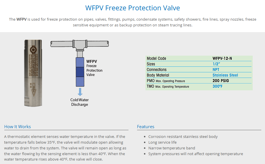 WATSON MCDANIEL WFPV Freeze Protection Valve Very good price