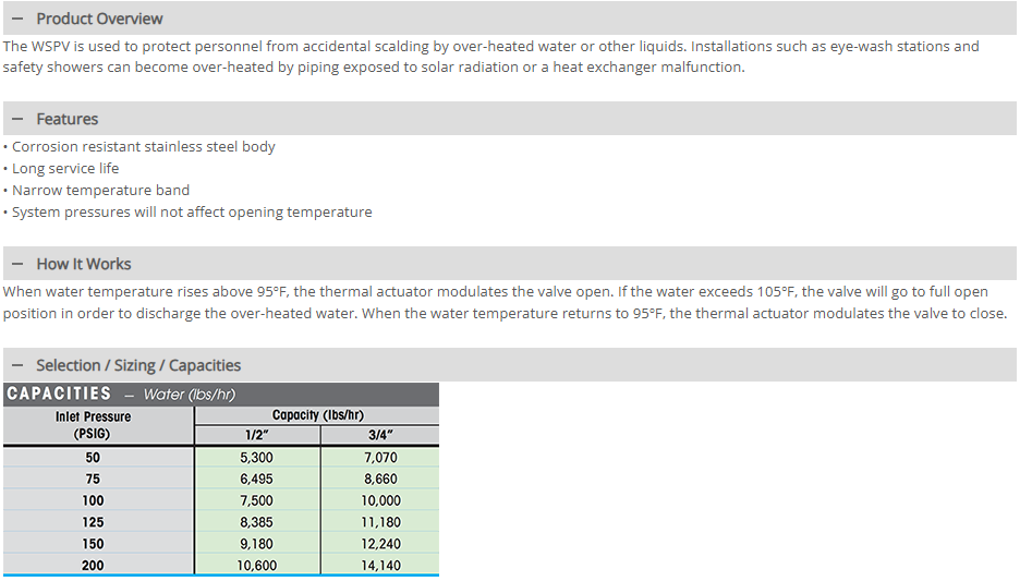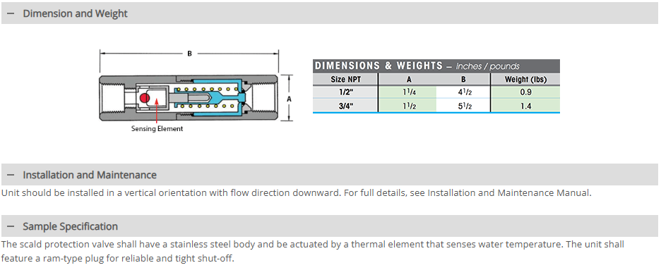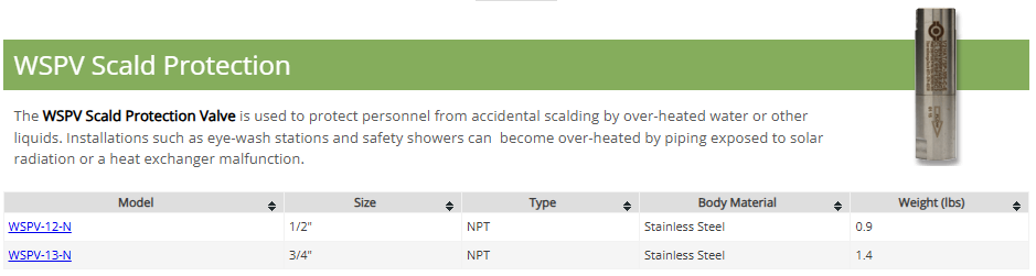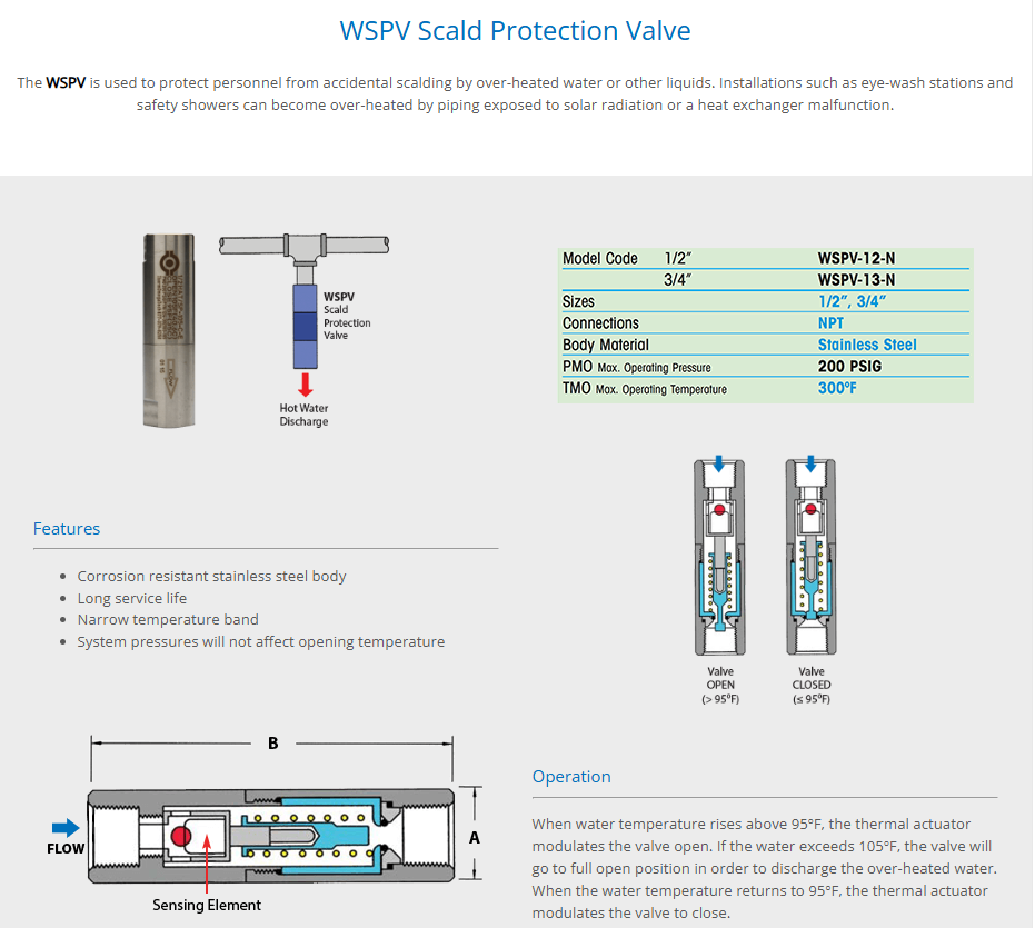 WSPV Scald Protection Valve