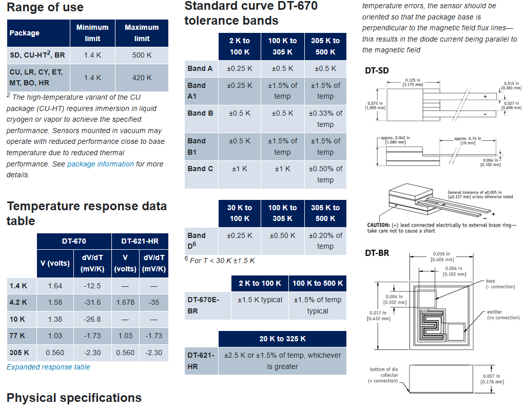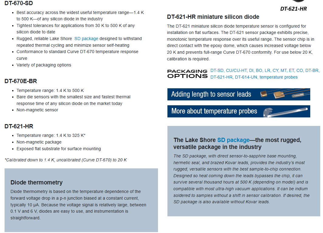 Lakeshore Cryogenic temperature sensors DT-670 silicon diodes