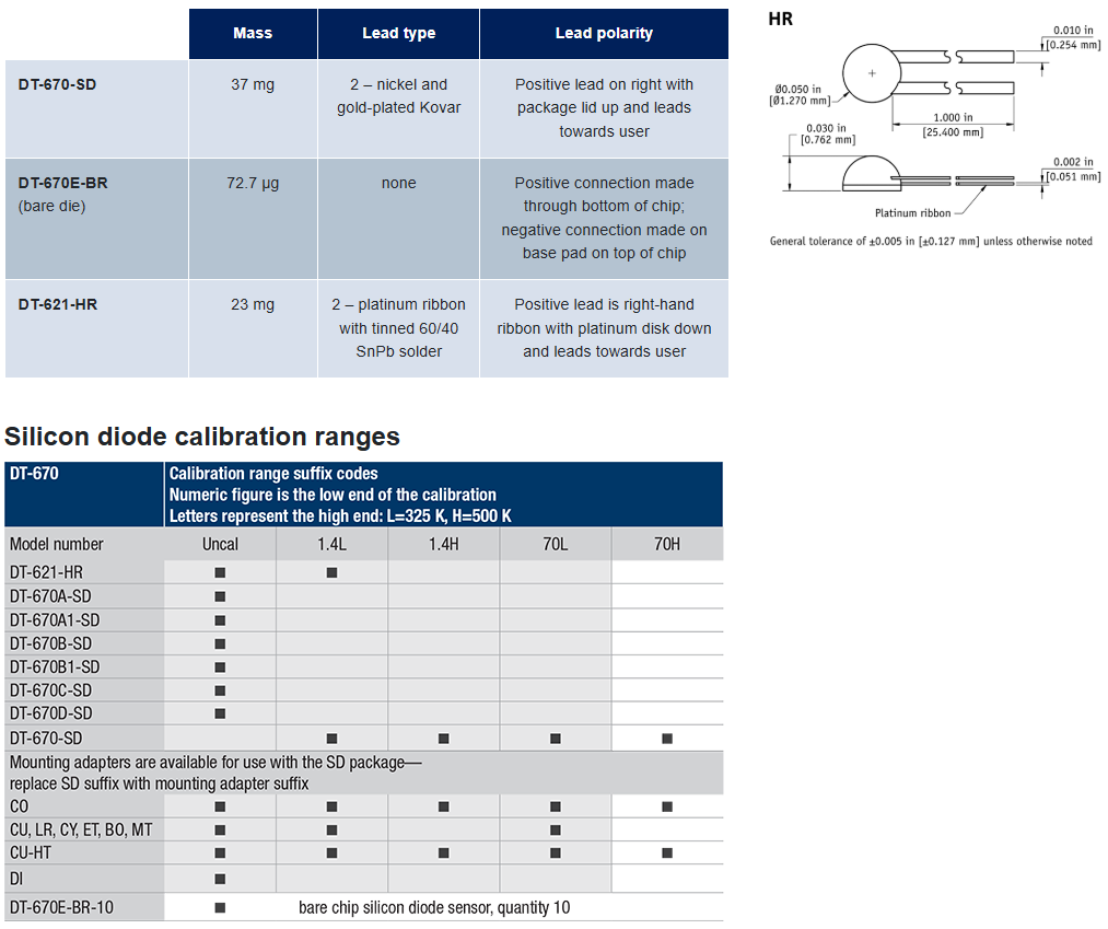 DT-670 silicon diode specifications